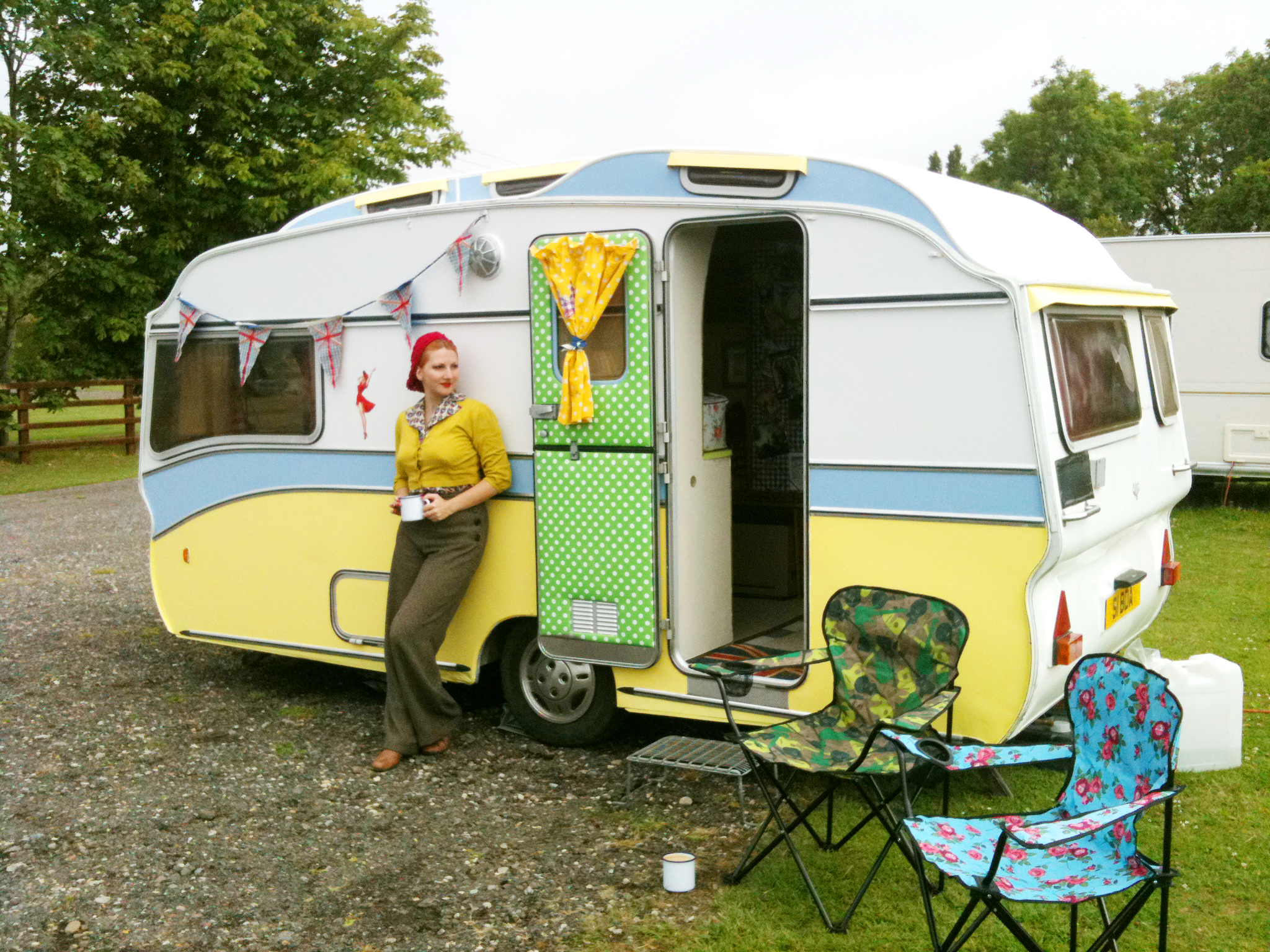 She towed very well and looked fantastic in the sunshine, especially after we hung bunting out! She got quite a lot of interest as we were parked opposite the military vehicle exhibits!