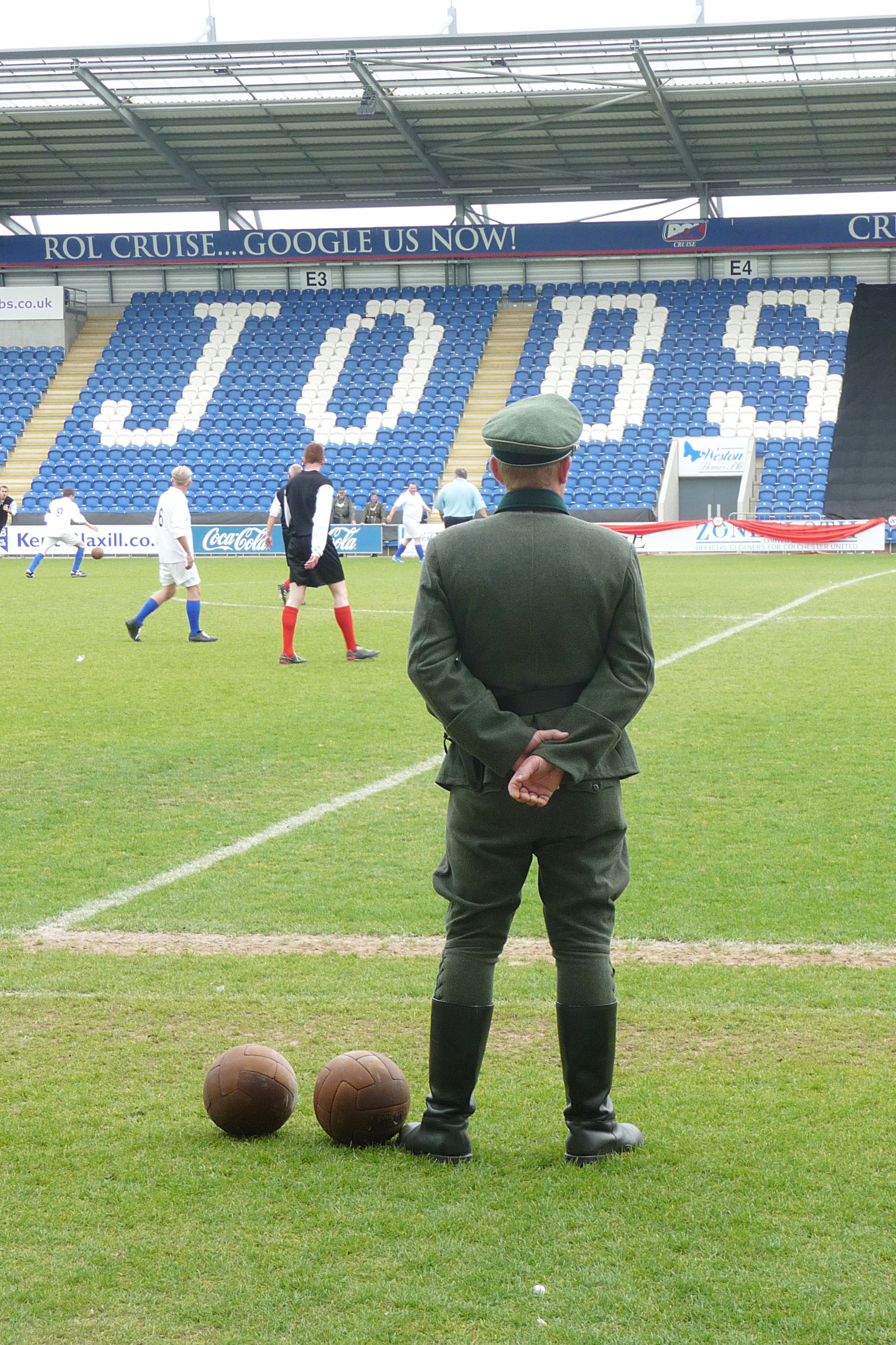 On Sunday I entertained the crowds at Colchester Football Stadium at a British Legion event! The stadium played host to a recreation of the football game from Michael Caine’s classic Escape To Victory between the Nazi soldiers and POW’s. Before the match I sang some 1940’s classics before doing my family friendly RAF Fancy Fan Dance outside the grounds. Then at half time I sang 3 songs (see the video above) for the crowd. This was the first time I had sung in a stadium and it was very strange hearing my voice echoing around the place!