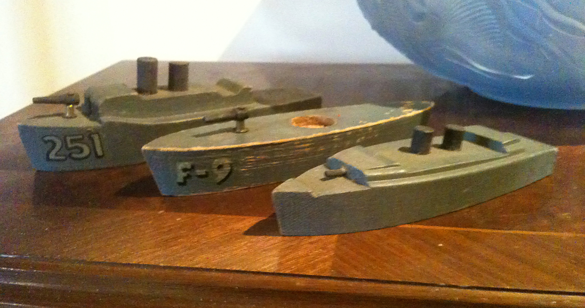 I saw three ships come sailing in….! With their original paintwork and a couple of missing pieces, these WWII ships are great examples of toys from the period. Metal was highly rationed in the war, meaning a lot of toys were wooden or plush.