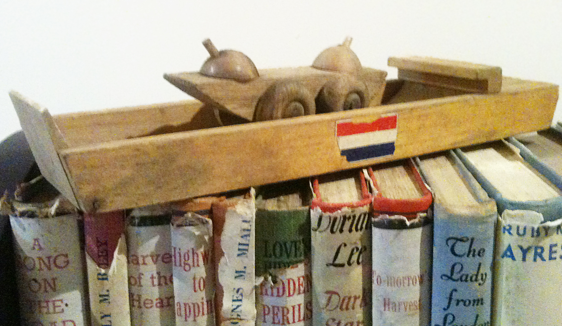 I thought I would share a couple of photos with you of some 1940’s military wooden toys I got Mr. Mew for his Birthday. He is starting to make some WWII inspired things, so thought these would be greta inspiration and show how some of them were made. These would have been the type of wartime gifts you would have bought from Sears in the 1940’s. There were more expensive varieties of WWII toys around, but I loved the fact that these had obviously been played with and seen many ‘carpet battles’ in their time!