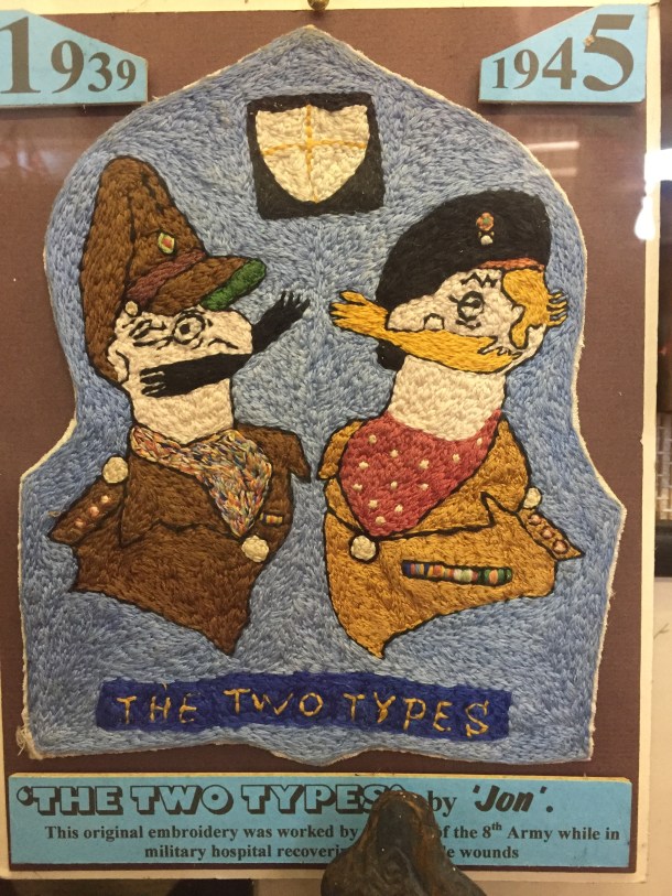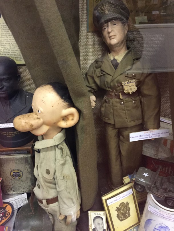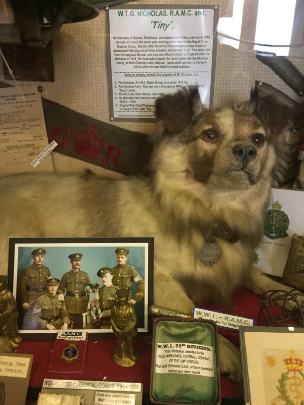 My favourite was definitely the gallery of wall cabinets. Full of dusty old wonders from the world wars, you can see uniforms, souvenirs, toys, paraphernalia and medals from Allied and Axis forces. There is even a taxidermy dog that was once found by Mr. Nicholas and his ambulance crew, whom were part of the Royal Army Medical Corps in the first war. They named him Tiny and he stayed with them throughout their time in France. Mr. Nicholas was permitted to take his doggy pal home, but unfortunately Tiny was struck by a car years later. He now sits and stares at all the visitors as they enter the museum!