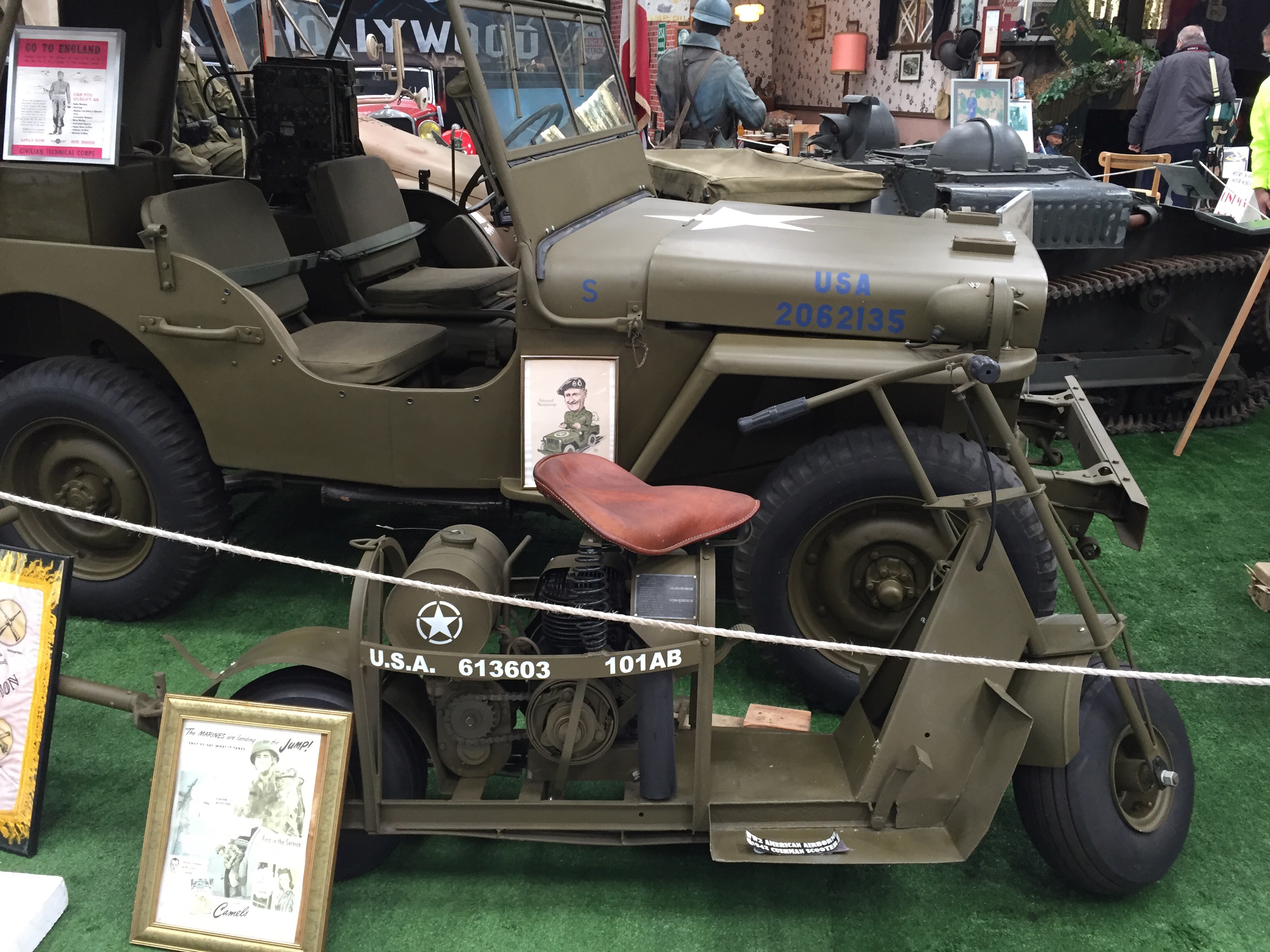 I had been to this fantastic little gem with the MVT many years back! We were lucky enough to be shown around by Tony Oliver himself, who collected the amazing range of First World War and WWII pieces in the cabinets as well as all the vehicles. When you arrive at the site, you may be mistaken for thinking that you have arrived in the middle of a giant police raid, but all the cars inside and out are available for (or have been used) in a variety of television shows and movies. As well as police cars there are military vehicles, bicycles and motorbikes from many different eras. The main exhibit focuses on 1900’s to 50’s, with a great collection of WWII vehicles (including Lt.Gruber’s ‘Little Tank’ from Allo Allo and another vehicle used in Indiana Jones!). General MacArthur’s Cadillac is gorgeous and there is also a very pleasant USO Shows exhibit too!