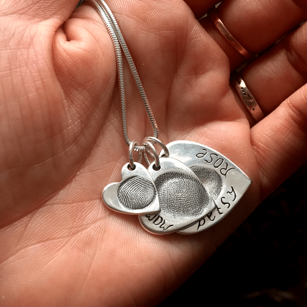 I came across fingerprint jewellery when I was carrying my 2nd child and I decided to give it a go. I will always remember working with that first piece of silver clay and after a little practice I had created my very first beautiful silver charm with my eldest daughter’s fingerprint. I have been making fingerprint jewellery for just over 2 years now and I love creating each special print. It has also given me the freedom to work around my family.