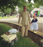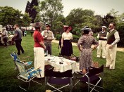 Betsy very much enjoyed all the attention she received in her vintage seersucker dress and droptoe pram. Richard wore an original American WWII Civil Air Patrol uniform and I went with some lavender Heyday trousers and a cotton blouse. I did have a 40’s oriental jacket over the top, but it got way too hot.