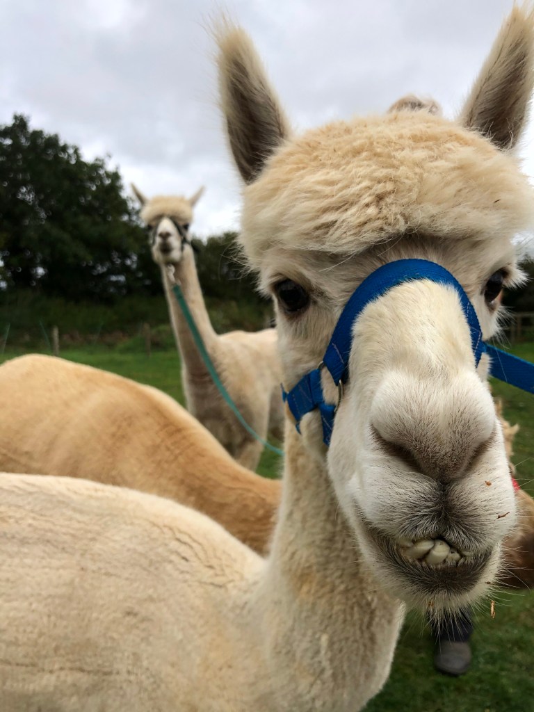 Our real treat was the Walk a Llama experience, which you can prebook with your entrance ticket at an additional cost. Boy, I was looking forward to this! In my head I envisaged a wild meadow, with happy llamas being lead gayley through buttercups and daisies. I wasn’t really expecting a tiny enclosure next to the carpark, but I do daydream big. We ended up waiting an hour as we were last in our group’s queue. By this time Horace, the largest llama, had started to get pee’d off with the exercise and was pretty skittish and grumpy as hell. Even the handler was having a few issues. The other two seemed fine. The mid sized one looked vaguely like Tina Turner and was rocking an Afro mullet, whilst the smallest was ADORABLE-BUBBLE with white fluff and protruding bottom teeth. Another reason why I wanted to take him home? His name was Hagrid. Finally it was our turn and Betsy took the rains of the cutie pie aforementioned. We had a friend with us, who was given Tina Turner. Guess who ended up with Llama Drama aka Horace aka Satan’s Poodle.