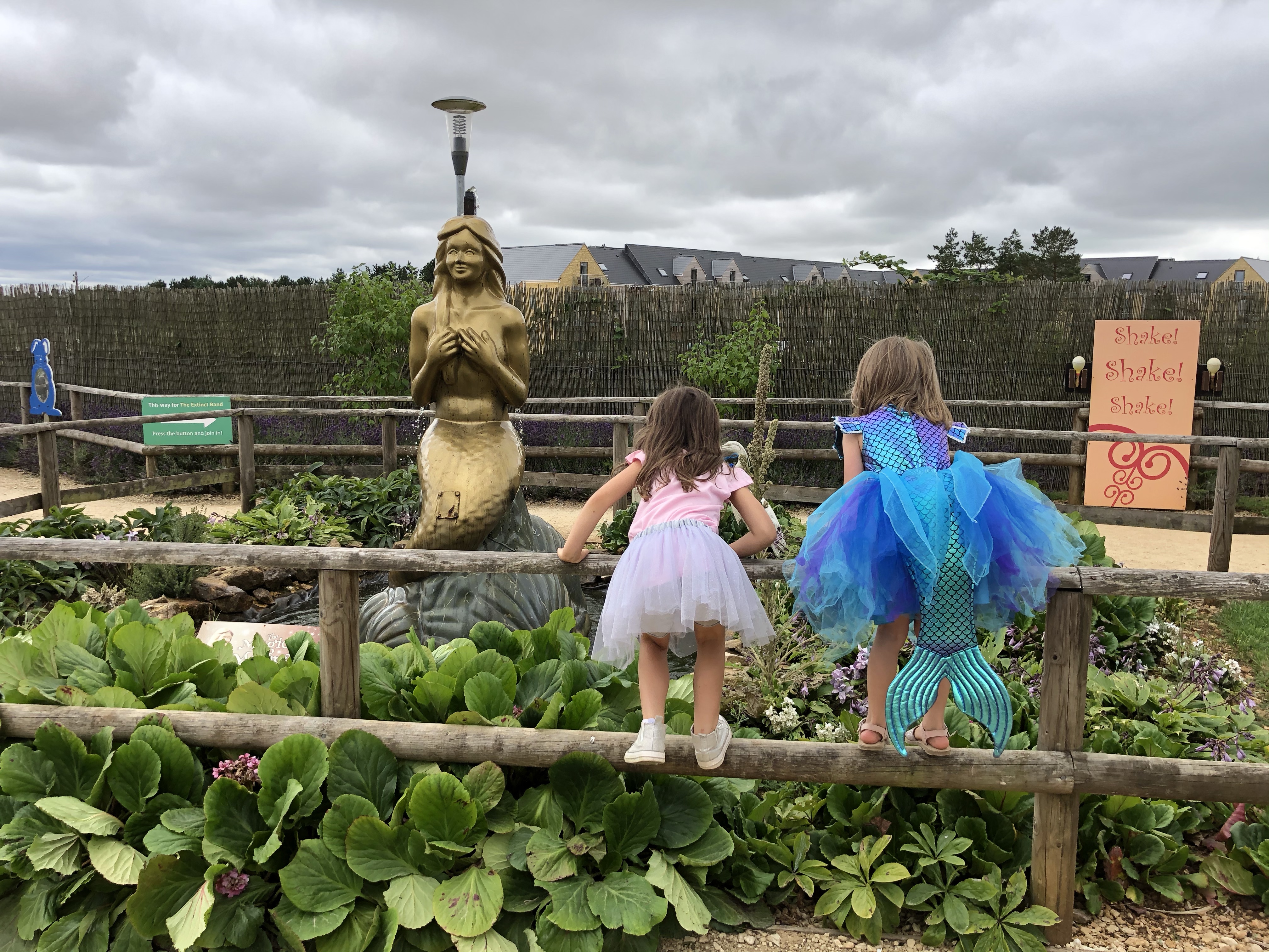 Upon leaving this area, you then enter a sort-of courtyard area with a wishing well, the dwarves cottage and various sheds housing dioramas. Children immediately unhook themselves from parents and prams and rush around with glee; whilst the adults stumble about trying to get accustomed to sheds, flies buzzing around Snow White’s hot head and arthritic geese swaying to tinkling music amid hay bales and Easter Bunnies. The larger characters (mermaids, sea creatures, Snow and her alarming possie of small gentlemen etc) are all fibreglass statues, spray painted like the kiddies rides you see at funfairs. You know, Disney-esque with a touch of despair and self loathing. This aside, they are big, bright, great for photos and the main attraction for our intrepid adventurers.