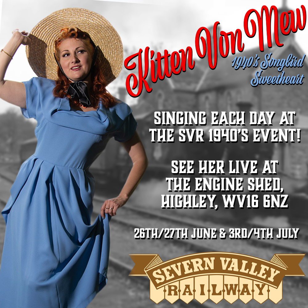 Severn Valley Railway 1940’s Event is BACK! Reenactors, demonstrations, vintage shopping and entertainment for 2 weekends running! Things will be a little different, due to Covid restrictions and keeping everyone as safe as possible, but I cannot wait to sing at The Engine Shed at Highley each day! The museum is wonderful, plus there is a cafe AND fabulous stalls selling 1940’s clothing, hats and accessories. Times are TBA, so keep your eye out for updates. What a perfect way to celebrate my Birthday weekend, WOOHOO!