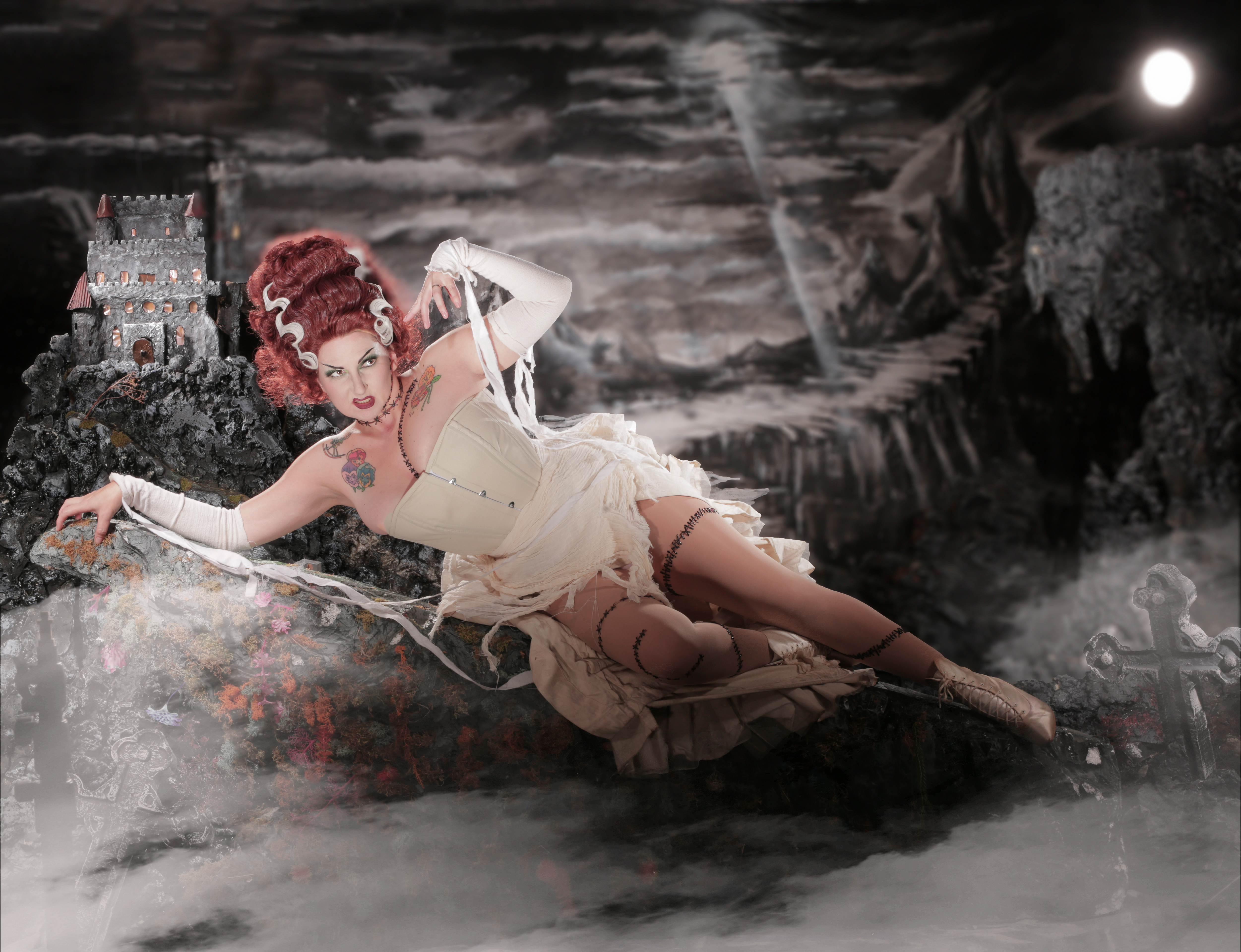 Yet again, I had the pleasure of having a fantastically spooky photoshoot with the incomparable Neil Nez Kendall! I just LOVE his Halloween sets and as soon as I heard that he had a Bride of Frankenstein wig for hire this time, I leapt at the chance. Bethany Jane Davies yet again did an outstanding job on my makeup and I always know I can count on her for vintage vamp fabulousness!