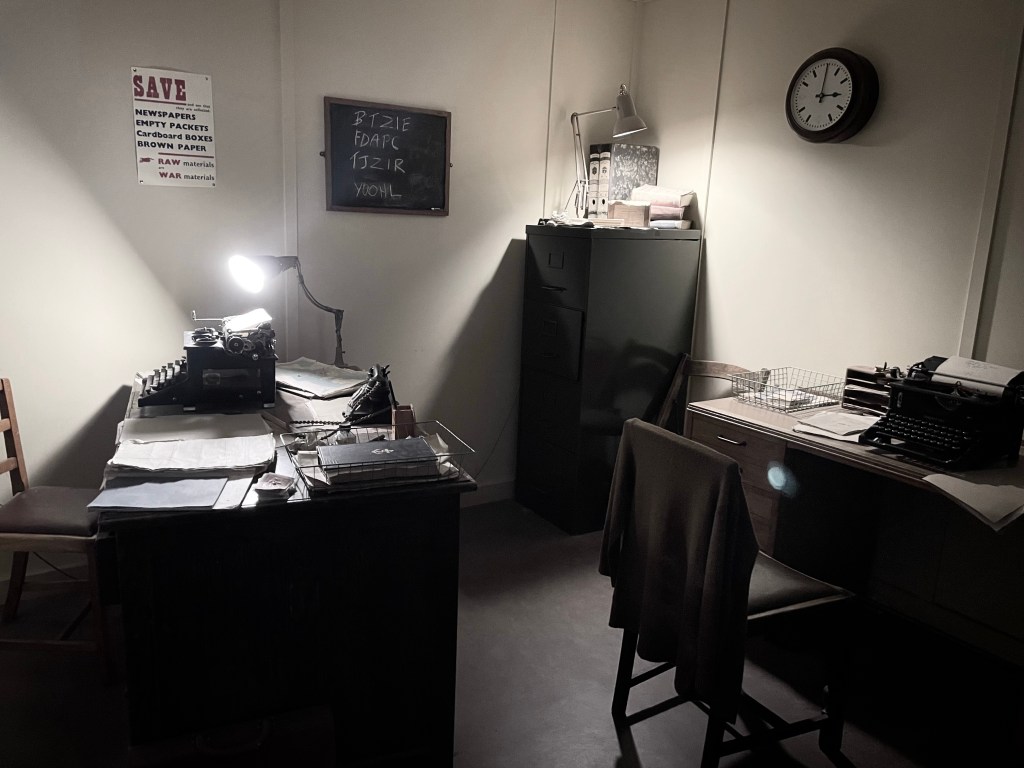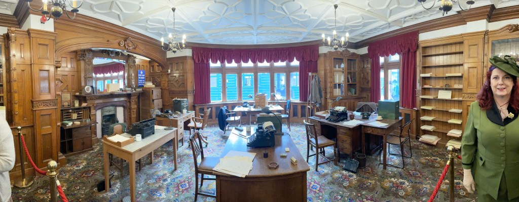Skip forward to today and there I was, going to Bletchley Park, with grey-blue, browny-orange hair that I tried desperately to camouflage in victory rolls and a hat. This was bad enough, but I also had a wardrobe malfunction before leaving. I had wanted to wear my original 1940’s green suit and the metal zipper broke when I was doing the skirt up. So I quickly put on a dress that was too big (but didn’t need ironing) and some 40’s style platform shoes…nope, the platform soles decided that now was a great time to disintegrate. I swapped to my Miss L Fire’s and we hot-stepped it out of the door.