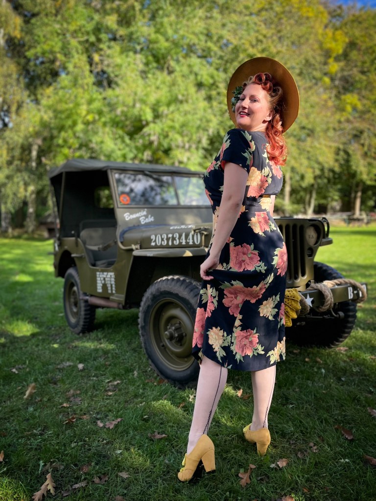 I had a wonderful time at Folkingham Remembers Operation Market Garden recently. The weather was astounding on Saturday and a constant downpour in the afternoon on Sunday! Did that put me off? Goodness no! I was the last entertainer standing and sang in the rain to a hardcore audience in a little orchard.