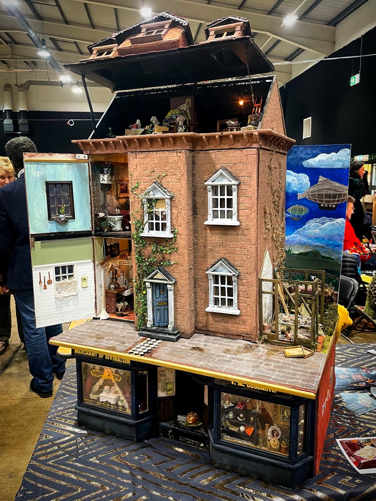 This weekend I had a wonderful time, exhibiting my dollshouse, steampunk diorama and hats at the Miniatura Show! Nestled between artisan sellers of furniture, teddy bears and food, I really didn’t think that my eccentric house would get so much interest and positive feedback! I was rather overwhelmed by everyone’s comments and reactions. It’s a very strange feeling when you create something that just stays in your house, doesn’t get seen by more than a handful of people…and then you present it to the world in a large hall.