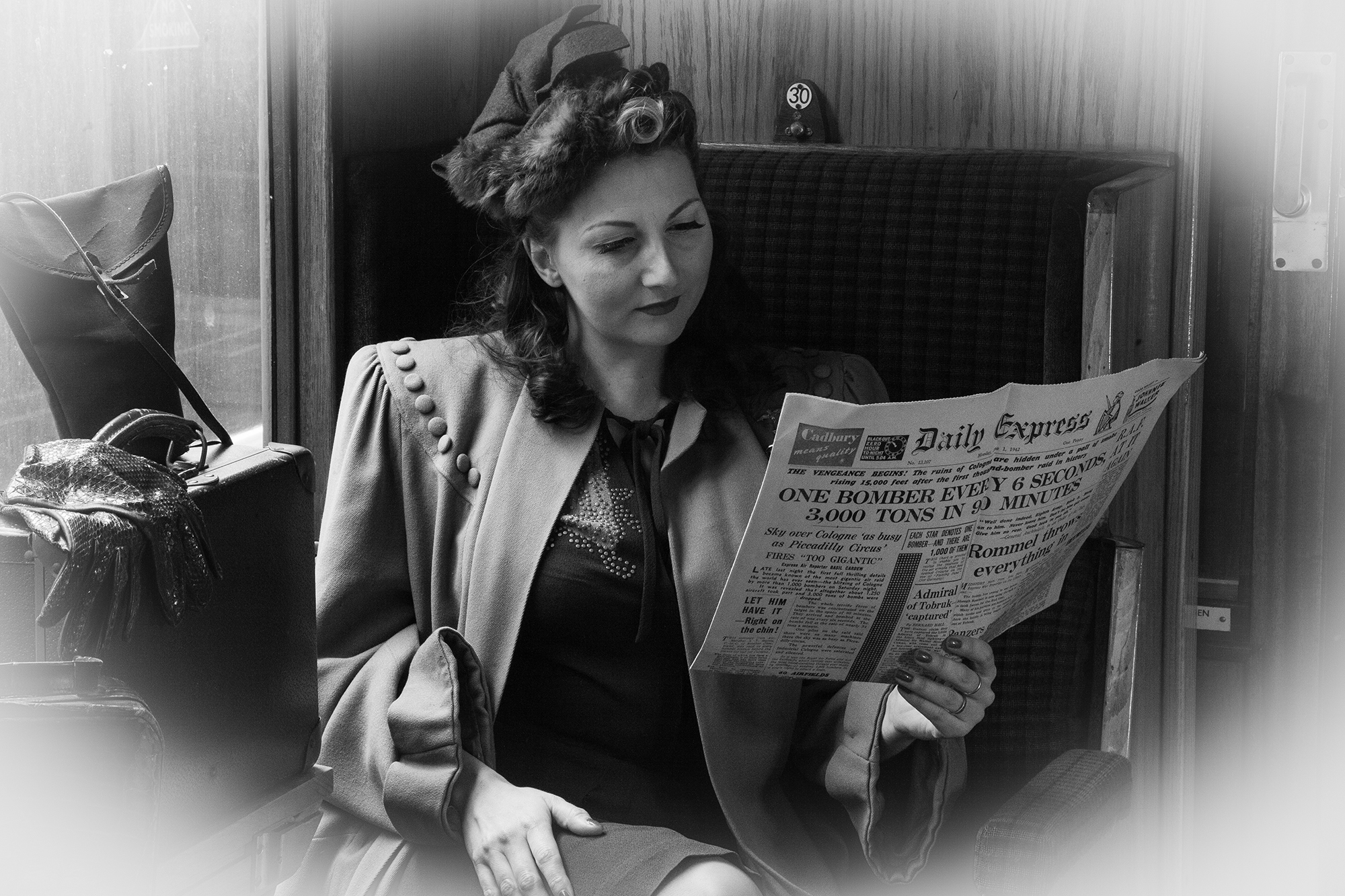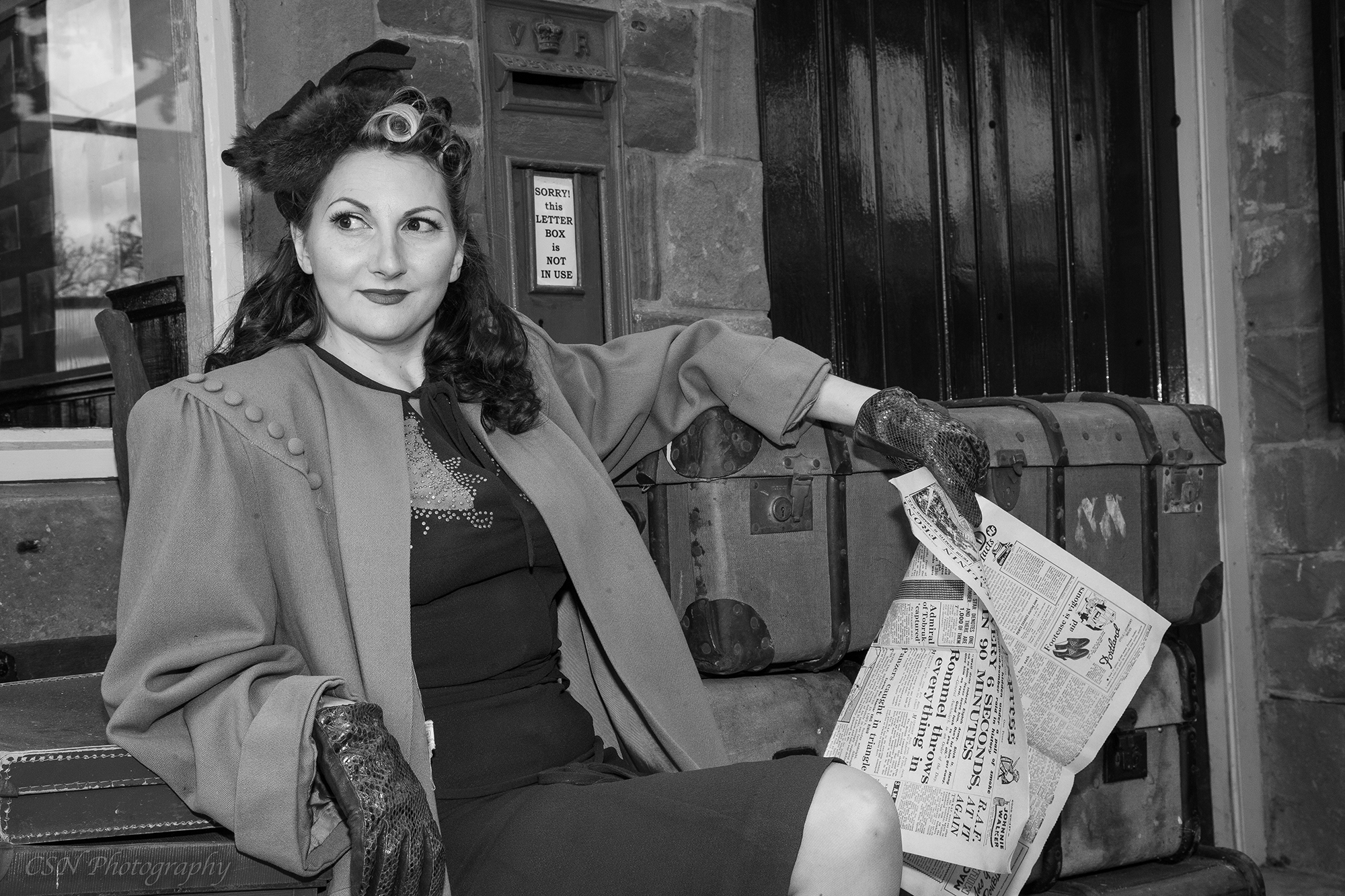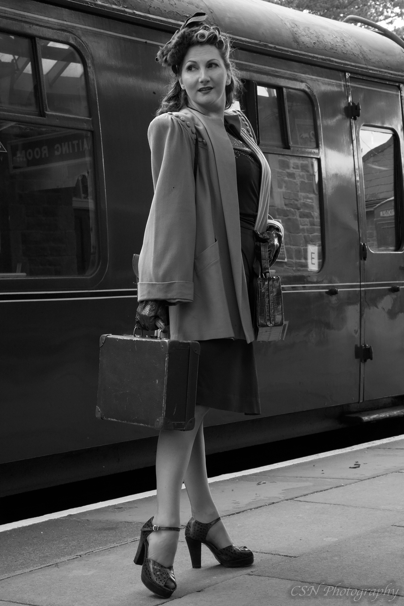 So here are my top pick pics for you! In the 1940’s themed images I am wearing an original 40’s swing coat, crepe dress and hat. The shoes are from Johnson’s Originals. In the 50’s/60’s images I am wearing an original novelty print vintage dress and Clark’s Shoes.