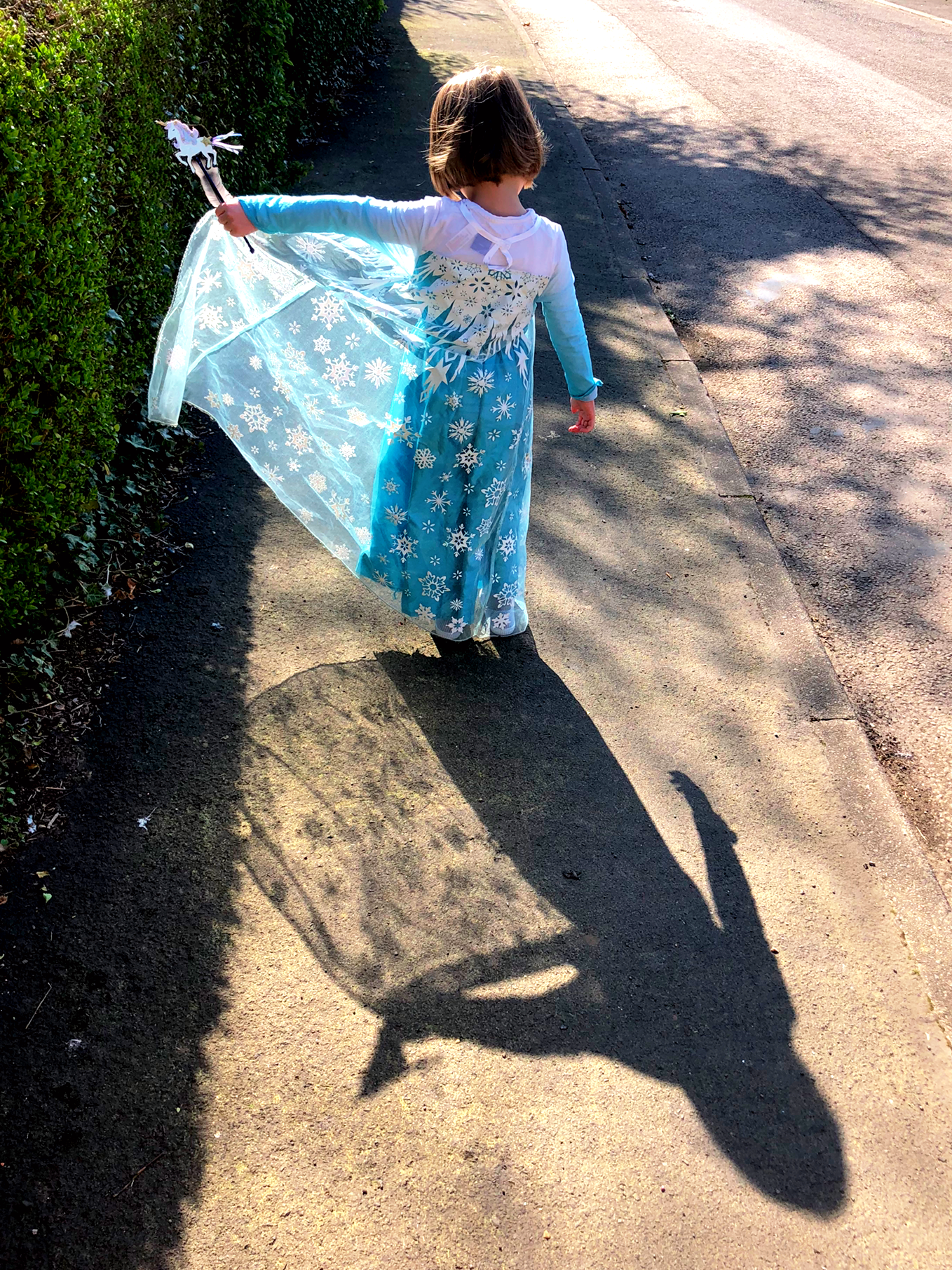 To update you with what I’ve been up to…every single week day, my 4 year old daughter and I dress up in a different theme and take our 1 hour of exercise time. My plan was to create some crazily cool memories for Betsy, focus on something fun by dressing up and bring some morale to the street. I suffer with depression quite badly and love the escapism of fancy dress or costuming. The fact I can use this outlet as a ray of sunshine for other people and keep my mental health more-or-less stable in these uncertain times is brilliant.