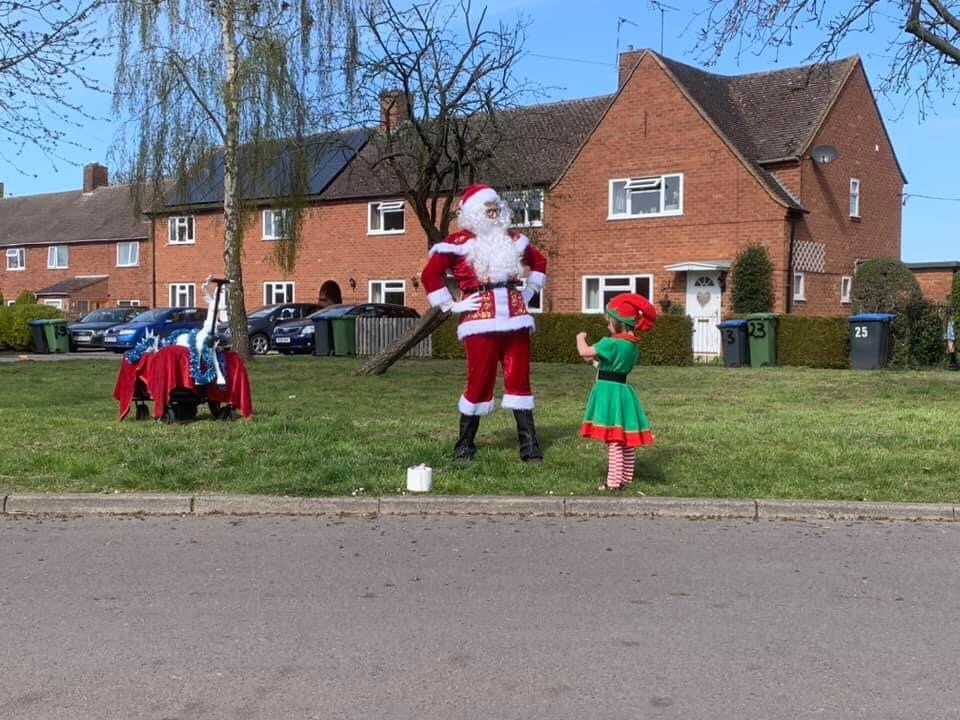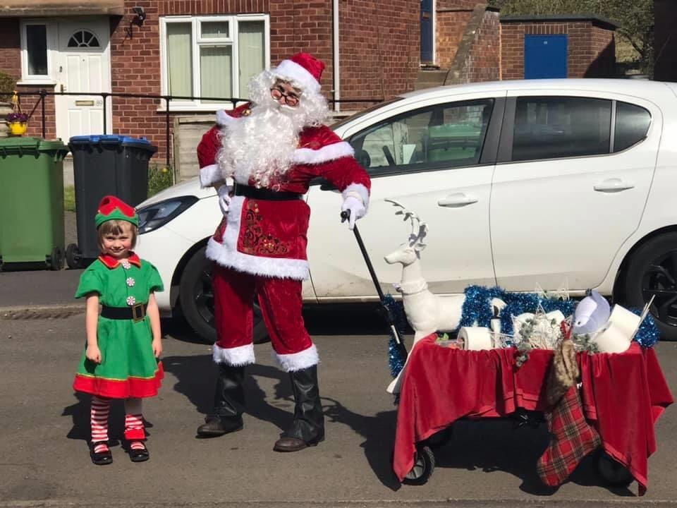 It was BAKING this Tuesday and I was dressed in full Father Christmas outfit, complete with beard, wig and hat. I had ordered a pack of 50 toilet rolls that I stacked inside my cart, which was decorated with tinsel, a reindeer and more! I put some vintage festive songs on my Bluetooth speaker and we made our way down the road. Everyone who waved got a toilet roll and I ran out! I left one on a parked ambulance, along with some sweets. “Ho ho ho! Meeeeerrrrry Covidmas!”