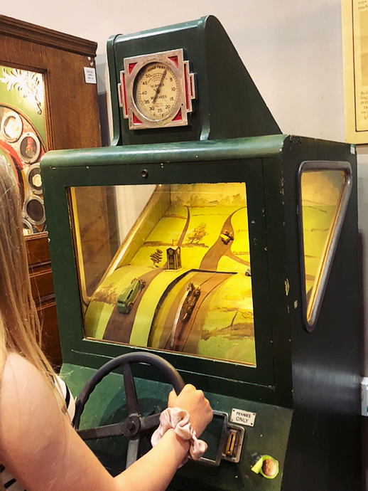 A little town, with shop windows to gawp at, industrial area, vintage vehicles, wartime items, cafe and shop, plus a wonderful antique penny arcade to play in!