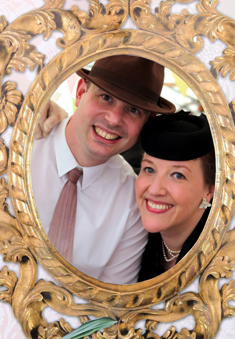 Mama wore a New Look style dress made by the talented Shona van Beers! I found the amazing oriental style fabric in London, whilst shopping for my wedding dress silk. I fell in love with the colours and patterns and thought it would compliment my Ma’s tastes well as she isn’t into the 40’s scene, but I know she will wear the dress again! Her jacket is original 1940’s and the hat I had made for her at Christmas. The ensemble is accessorised with a vintage oriental coral hat pin, an Art Deco necklace and 40’s handbag (of which I am very jealous of…).
